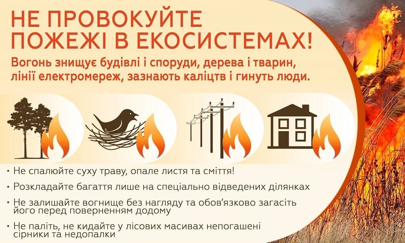 Не провокуйте пожежі в екосистемах